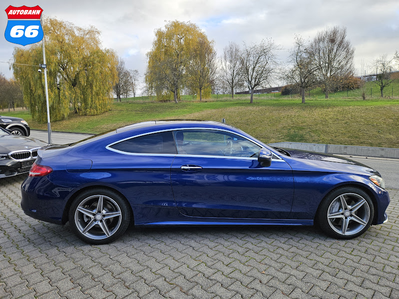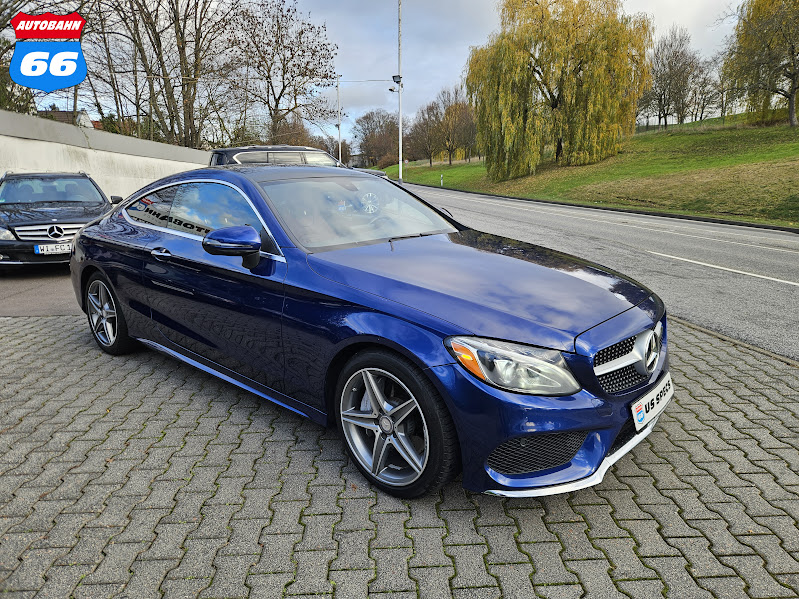This 2017 Mercedes‑Benz C300 Coupe AMG (U.S. spec) blends elegance with performance. Powered by a 2.0 L turbocharged inline‑4 delivering 241 hp and 273 lb‑ft, it channels power through a refined 7‑speed automatic, offering a brisk 0–60 mph in about 6.2 seconds and strong handling thanks to its agile chassis and sporty suspension. Its sleek coupe silhouette, rear‑wheel (or optional 4MATIC AWD) layout, and luxurious finish make it a stylish yet spirited compact executive offering